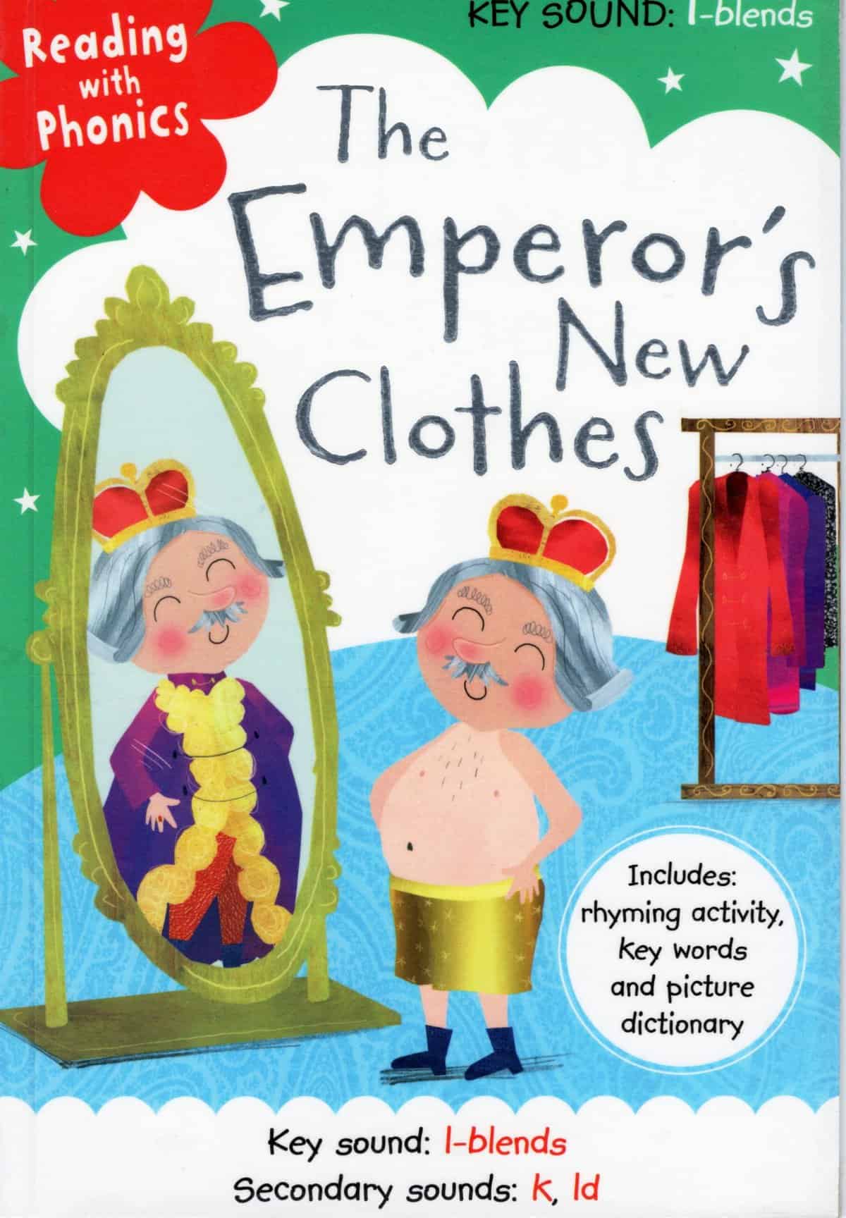 A fun retelling of the story of The Emperor’s New Clothes.Share the story and the learning activities with your childto encourage their reading and reinforce their learning of phonics.Stories are told in lively, rhyming text.A repeated refrain encourages less-established readers to join inEach book targets a key sound or a blend of sounds. Letters are highlighted inred to help children focus on the different groups of letters that make this sound.Phonics support pages reinforce learning with simple verbal activitiesfor children and adults to complete together.Includes: rhyming activity,Key words and a picture dictionary.